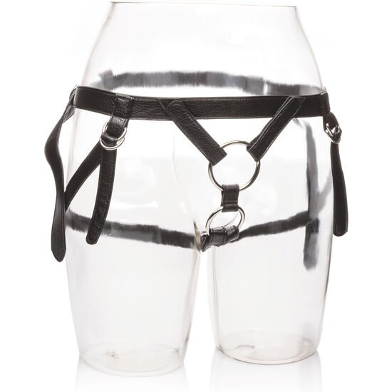 Este arnês tem um design mais resistente para quem é amante do couro. Incorpora 4 tiras adaptáveis.