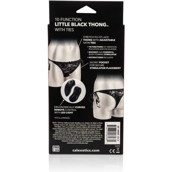 Tanga de renda preta com bala vibratória removível com 10 funções diferentes.