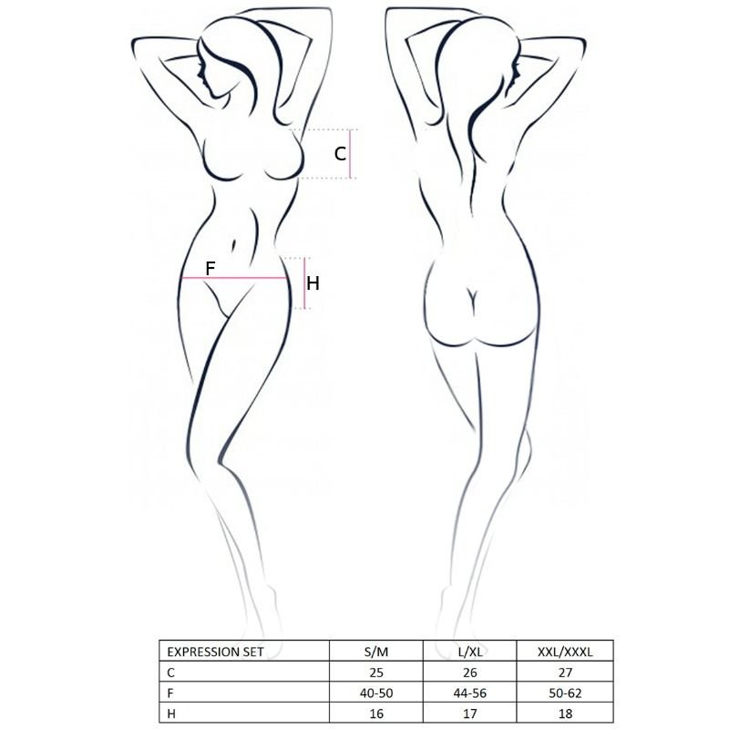 O conjunto da coleção Expression é um fabuloso conjunto de lingerie com um design espetacularmente sexy com o qual você se tornará uma bomba de sedução, fabricado pela prestigiada marca de lingerie Passion