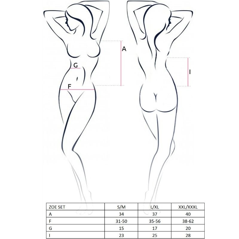 O conjunto da coleção Zoe é um fabuloso conjunto de lingerie com um design espetacularmente sexy com o qual você se tornará uma bomba de sedução, fabricado pela prestigiada marca de lingerie Passion