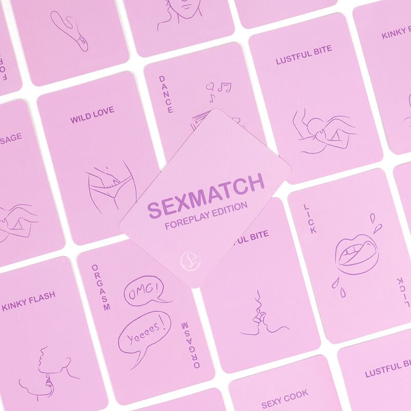 Sexmatch Foreplay Edition é o jogo de cartas para pares no qual você deve fazer coincidir ilustrações e palavras realizadas desafíos até que um dos dois se quede sem cartas. O jogo contém 89 cartas de jogo (81 cartas e 8 comodines) e 1 carta guia.